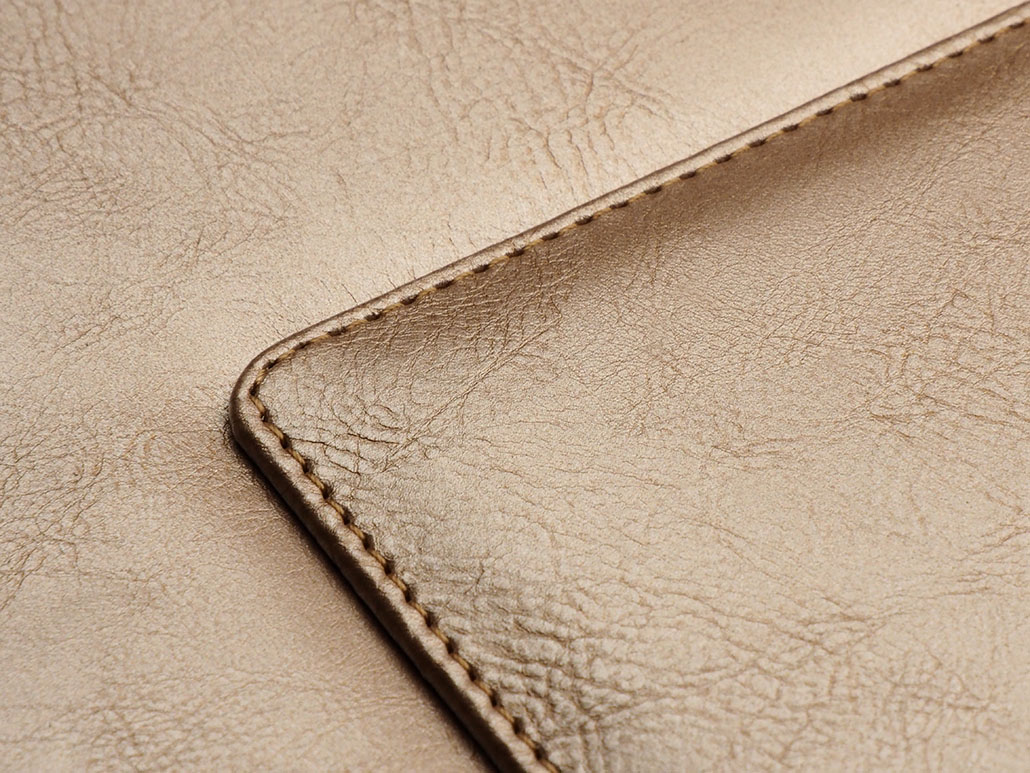 Peene naturaalse nahatekstuuriga ökonahk. Soe ja nahkne puudutus. Ei muutu reljeefselt värviliseks, andes diskreetse logoefekti.