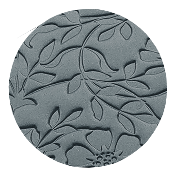 Wariant recyklingowanej skóry Spectro, zdobiony renesansową kwiatową arabeską.